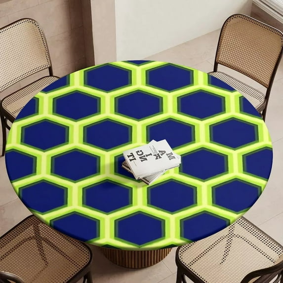 Abstract Honeycomb Geometric Pattern Design Round Table Cover Kitchen