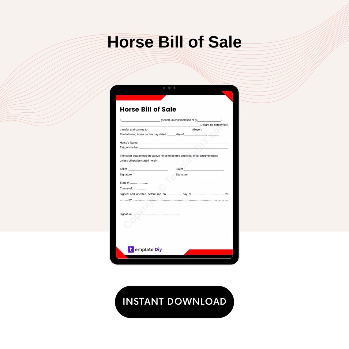 Horse Bill of Sale Blank Printable Form Template in PDF Word Etsy
