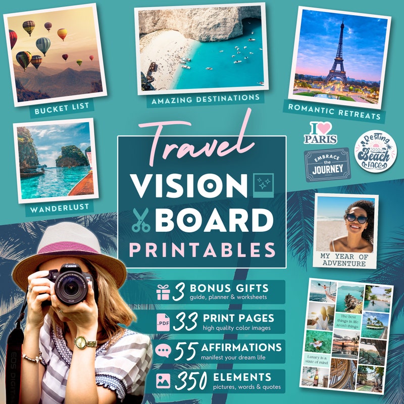 Travel Printable Vision Board Images Digital Download Manifest