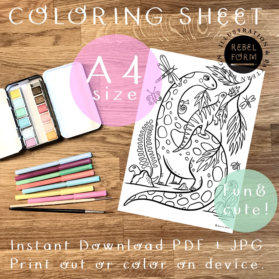 Printable Coloring Page Dinosaurs A4 PDF JPG Instant Download Etsy