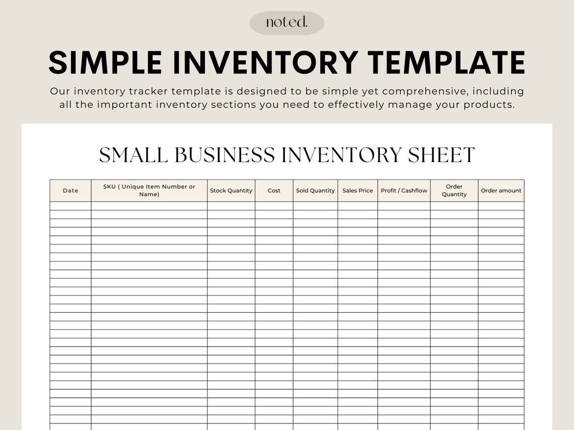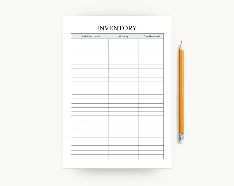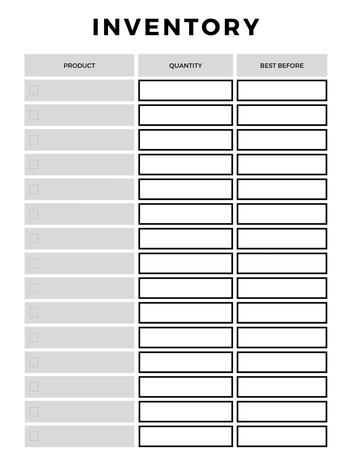 Printable Simple Minimalist Table Style Inventory Sheet · InkPx