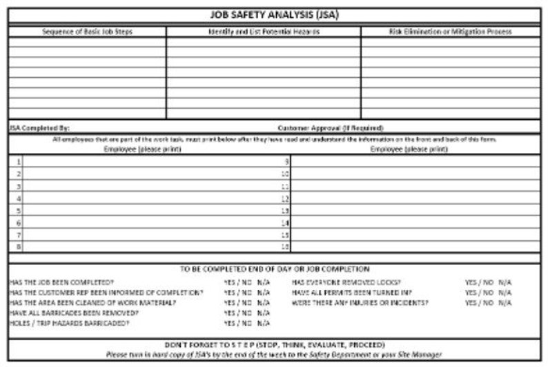 Printable Jsa Form Printable Templates