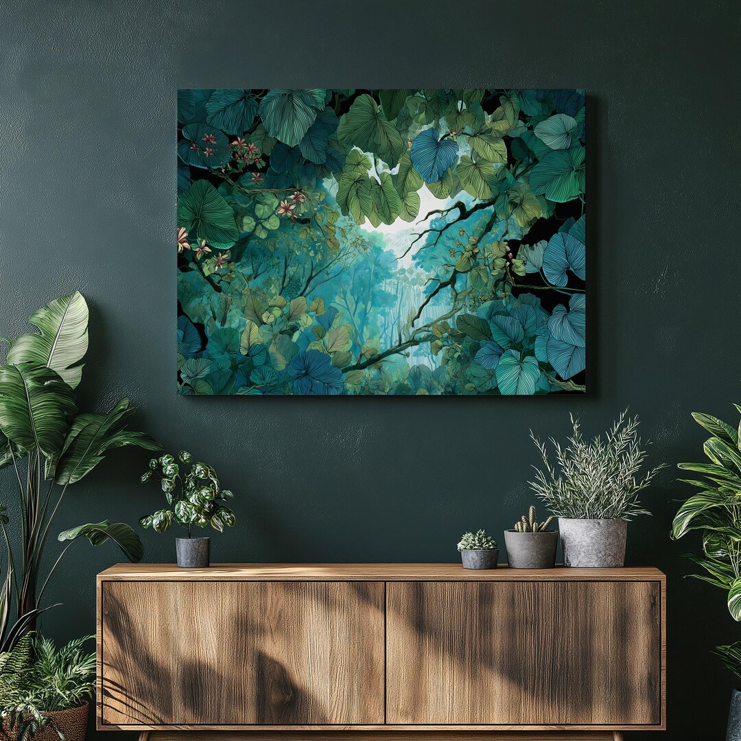 Tropical Waterfall Jungle Canvas Wall Art Lush Rainforest Print
