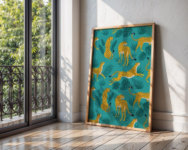Cheetah Jungle Pattern Wall Print Bold Animal Illustration With