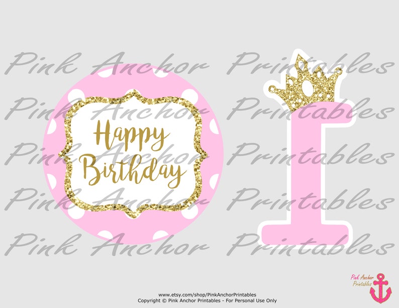 Printable Centerpieces Princess Tiara Girl 1st Birthday Etsy