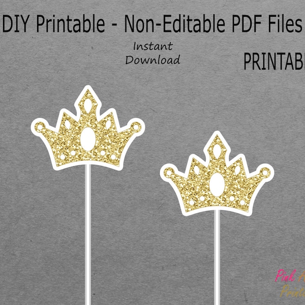 Princess Cupcake Toppers {PRINTABLE}~Gold Pink Personalized Crown