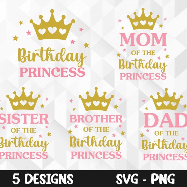 Birthday Princess Svg Bundle Mom of the Birthday Princess Dad of the