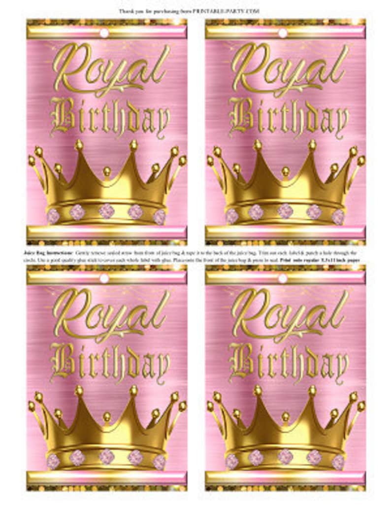 Printable Juice Bag Labels Royal Princess Queen Pink Gold Etsy