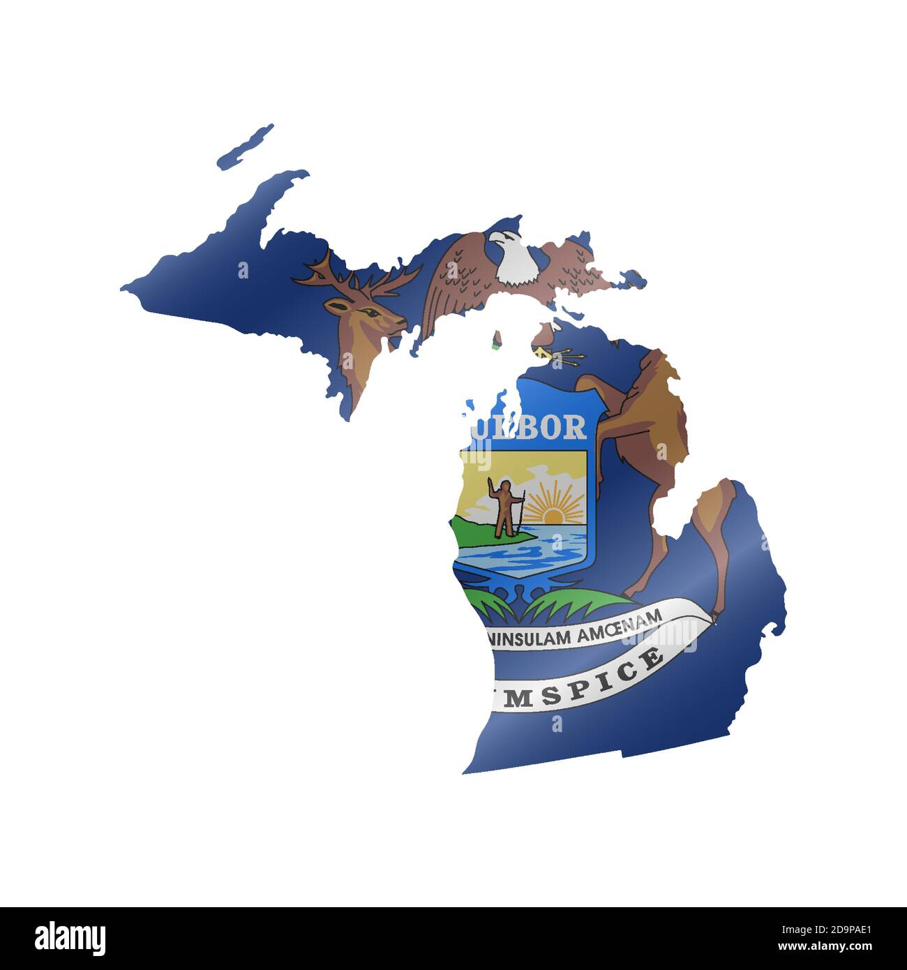 Waving flag map of Michigan Vector illustration Stock Vector Image