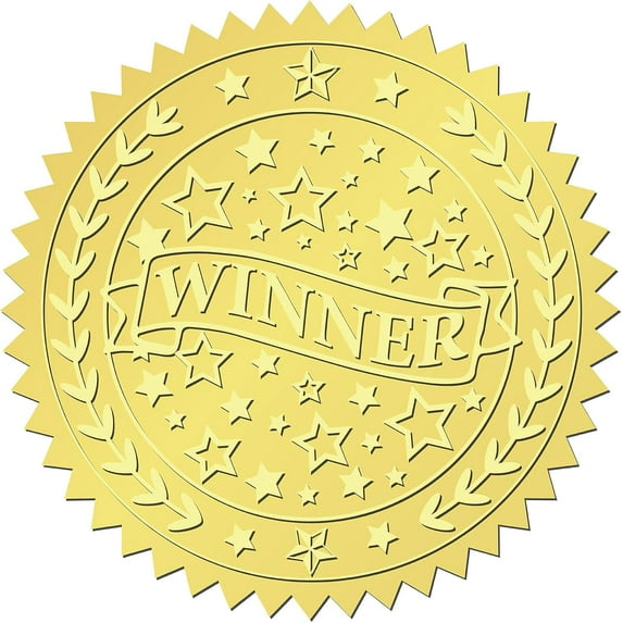 408Pcs Winner Star Gold Foil Embossed Stickers 2 quot Self Adhesive