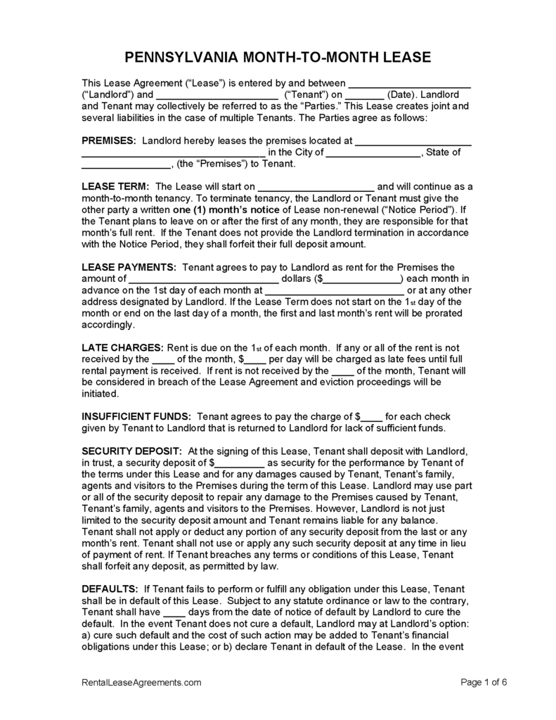 FREE Printable PA Lease Agreement Printable Lease Agreement