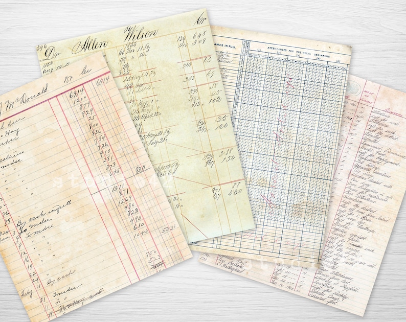 Vintage Ledger Pages Printable Ledger Paper Junk Journal Etsy