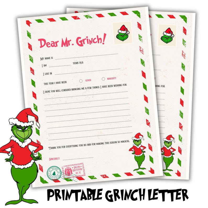 Grinch Christmas Wishes in Writing: Fillable Letter Designs for