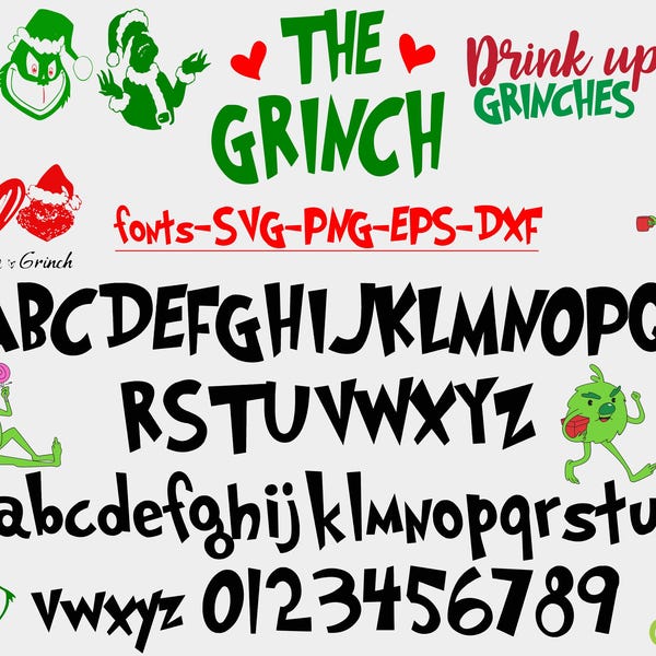 Set 2 Grinch Doodle Alphabet Letters PNG Sublimation and Cliparts