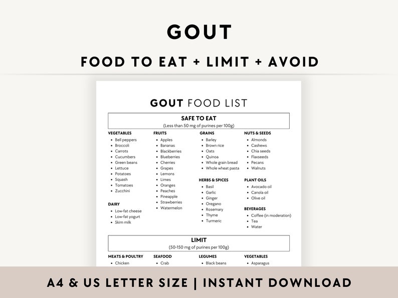 Gout Food List and Diet Guide Patient Education Guide Etsy