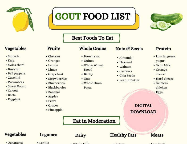 Gout Food List Gout Diet Cheat Sheet Printable PDF Helps You Decide