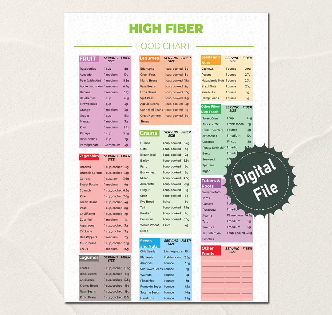 Printable High Fiber Food Chart
