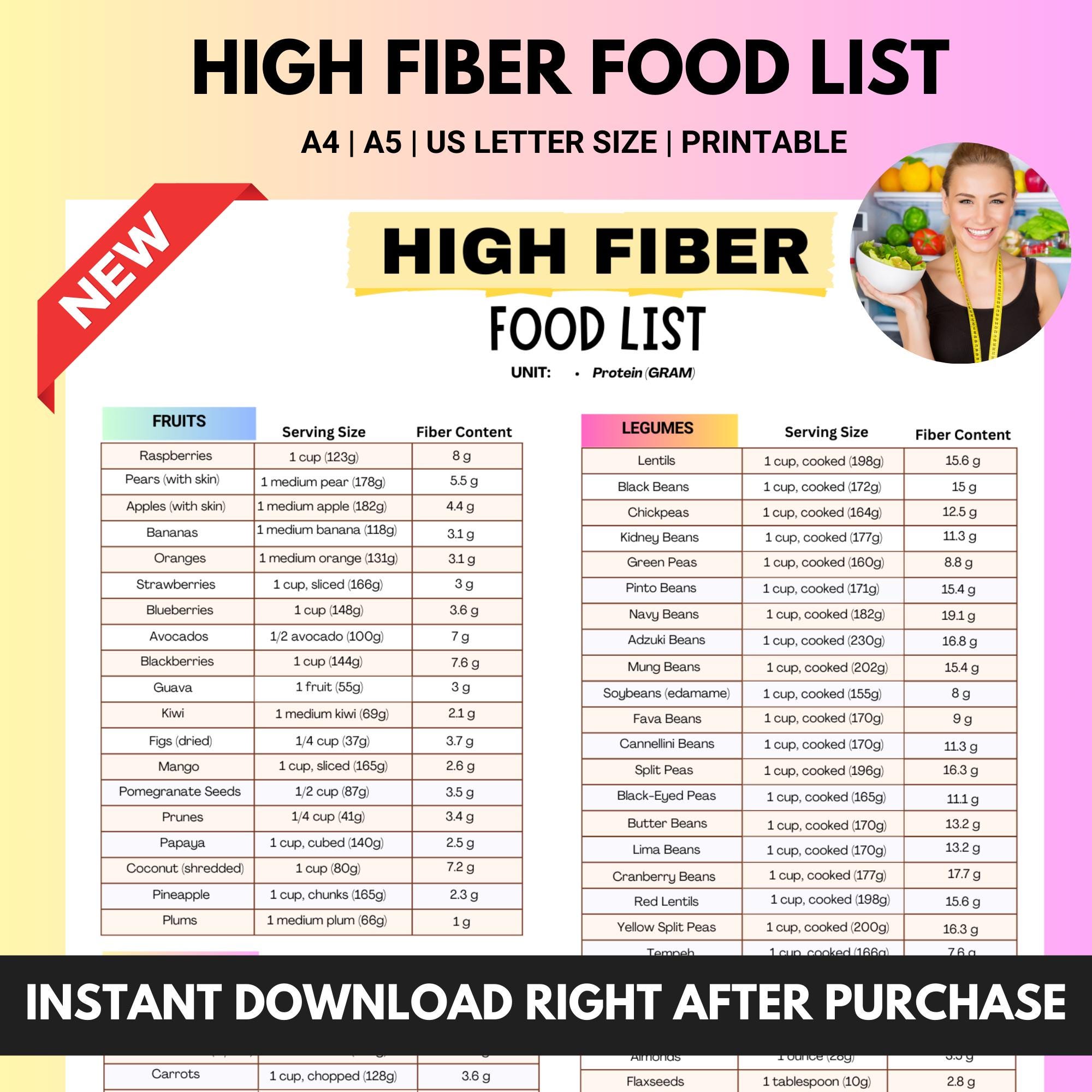 High Fiber Foods Chart (with FREE Printable List of High Fiber Foods