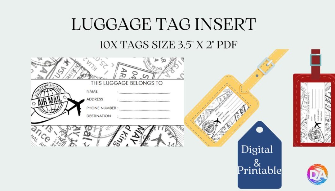 Luggage Tag Inserts Printable Luggage Tag Insert Digital Download