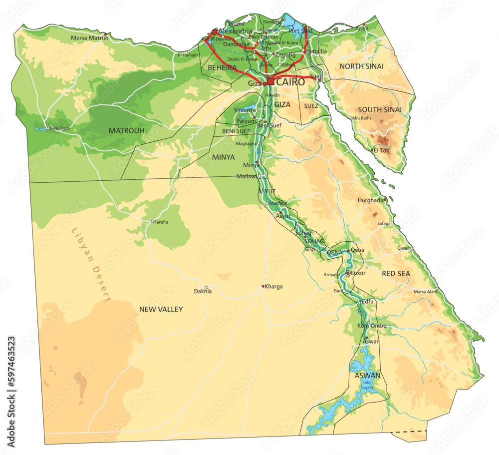 Highly detailed Egypt physical map with labeling Stock Vector Adobe