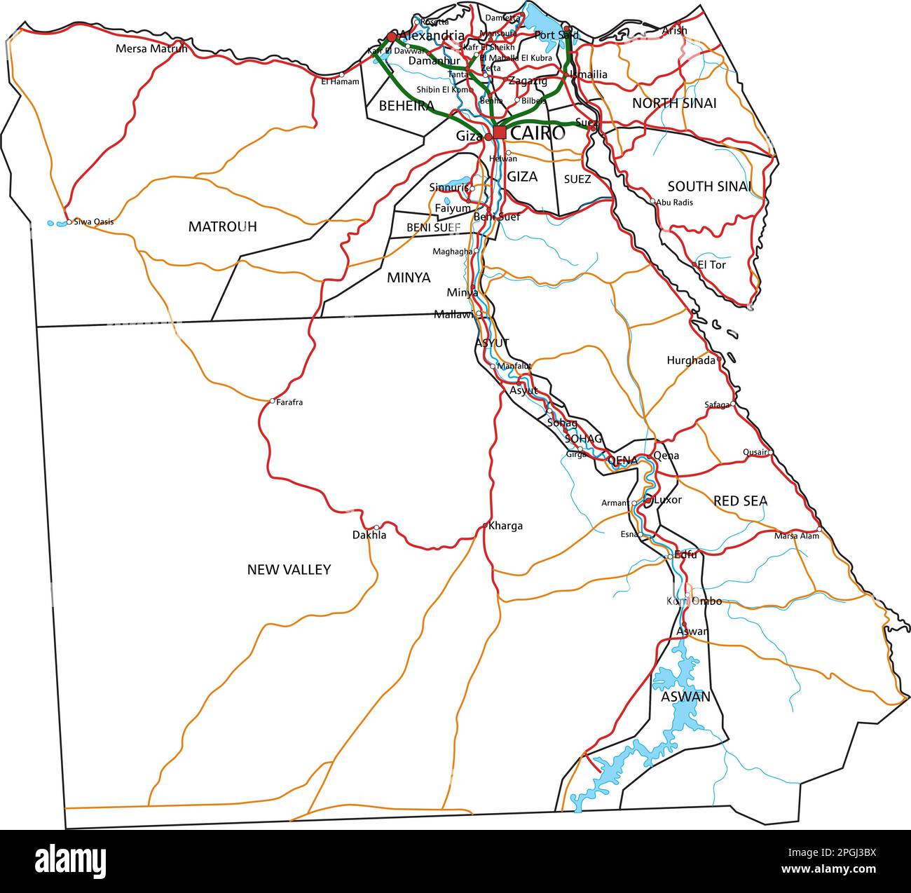High detailed Egypt road map with labeling Stock Vector Image Art Alamy