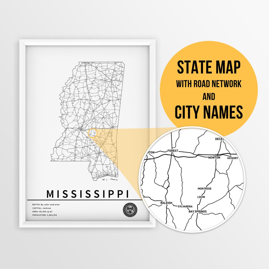 Printable Map of Mississippi Wall Art Home Decor Housewarming Gift