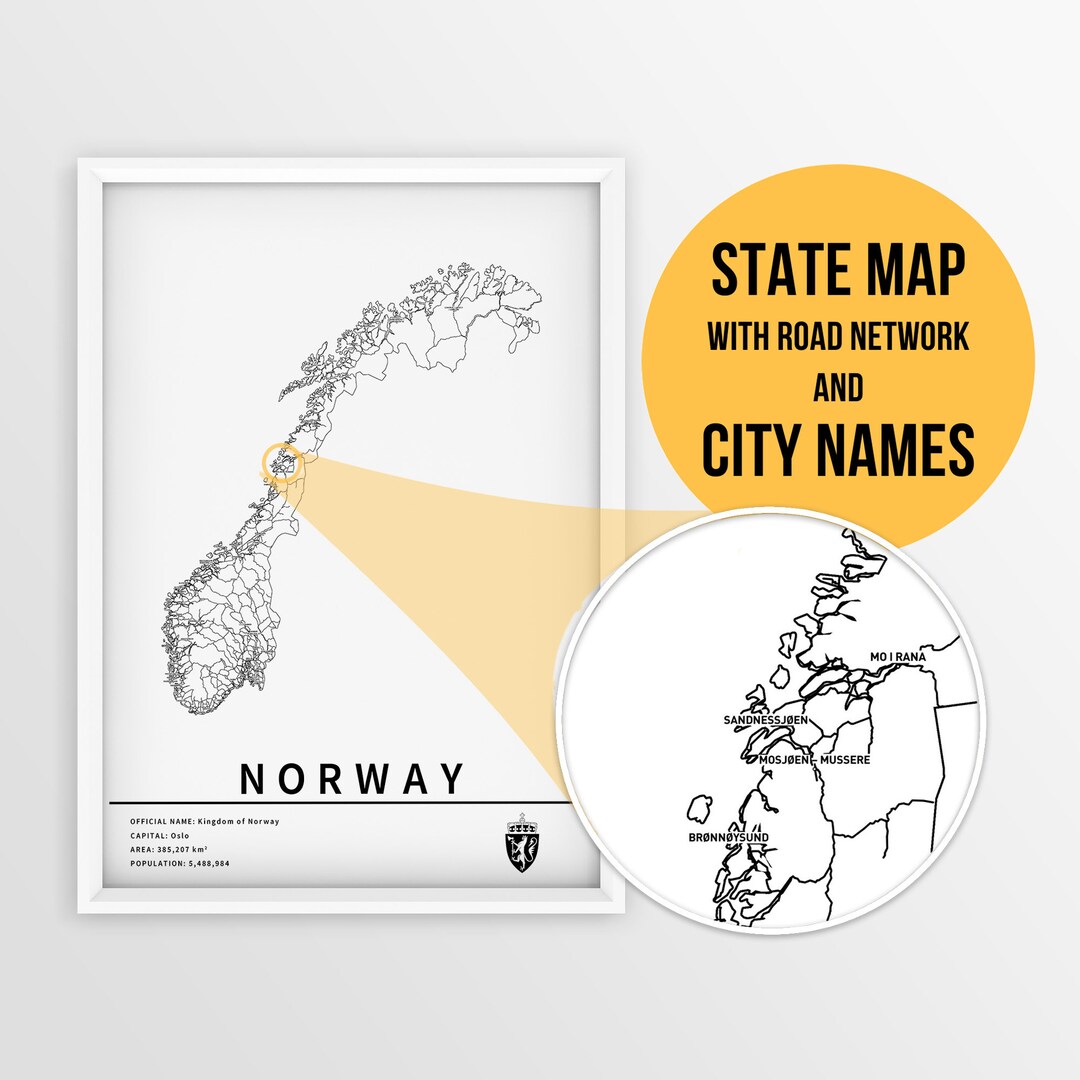 Printable Map of Norway With City Names and Roads Instant Download