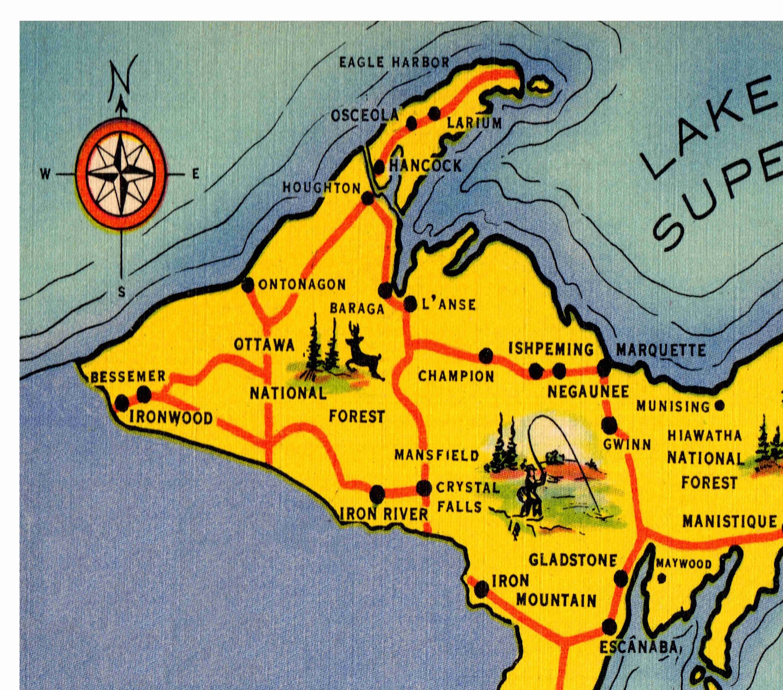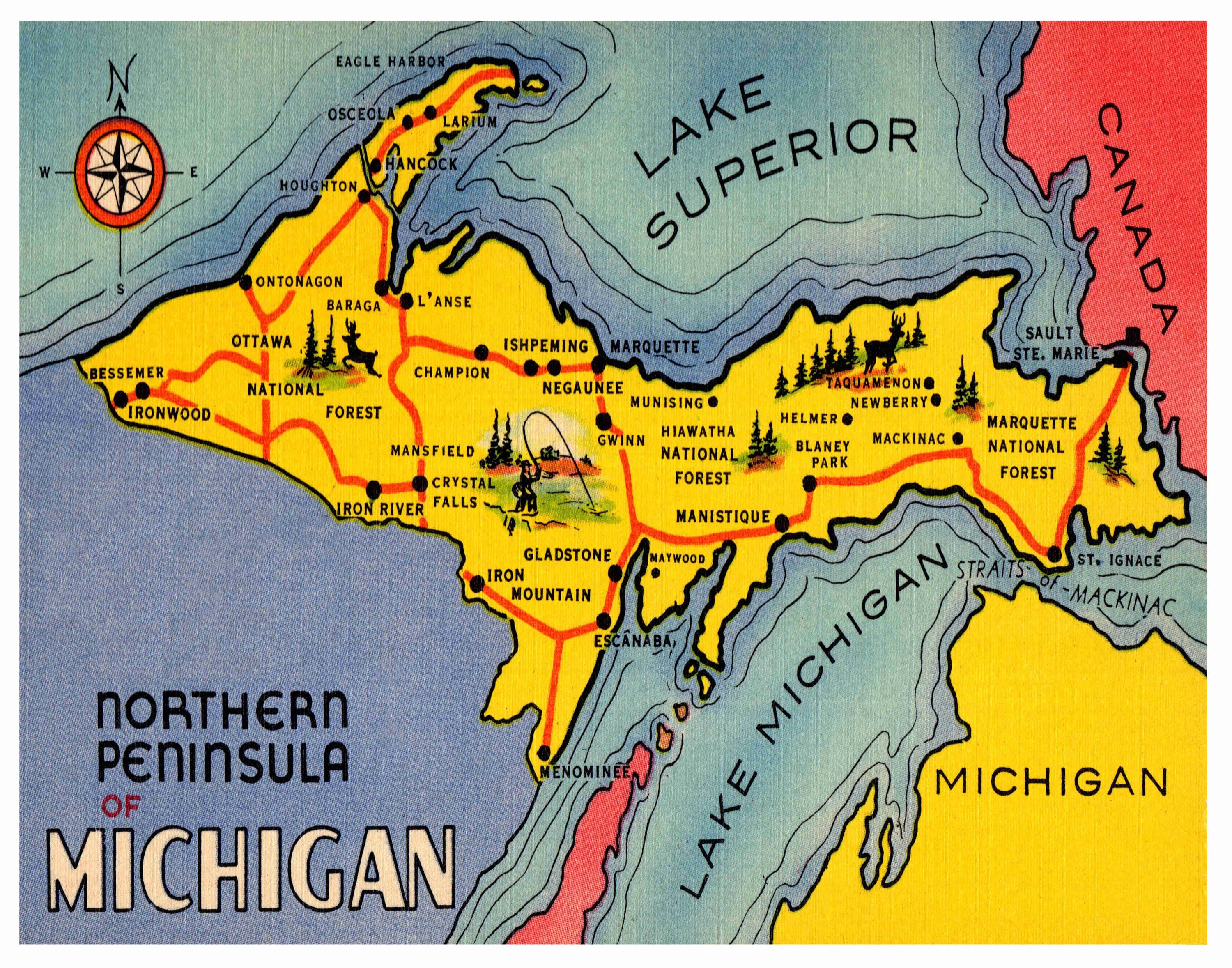 Upper Peninsula Michigan Map with Illustrations FOR TRADE by bdsuss