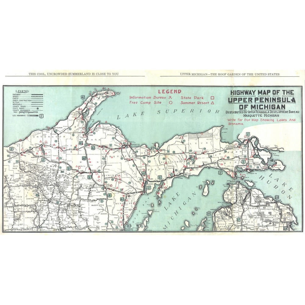 Upper Peninsula of Michigan Map 1935 Old Map of Upper Peninsula of