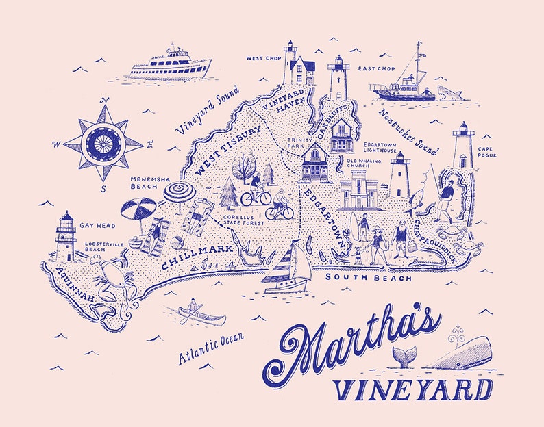 Marthas Vineyard Map Print and Marthas Vineyard Prints for Etsy Map