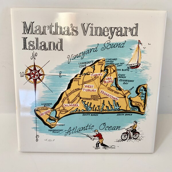 Vintage postcard showing map of Martha #39 s Vineyard Marthas vineyard