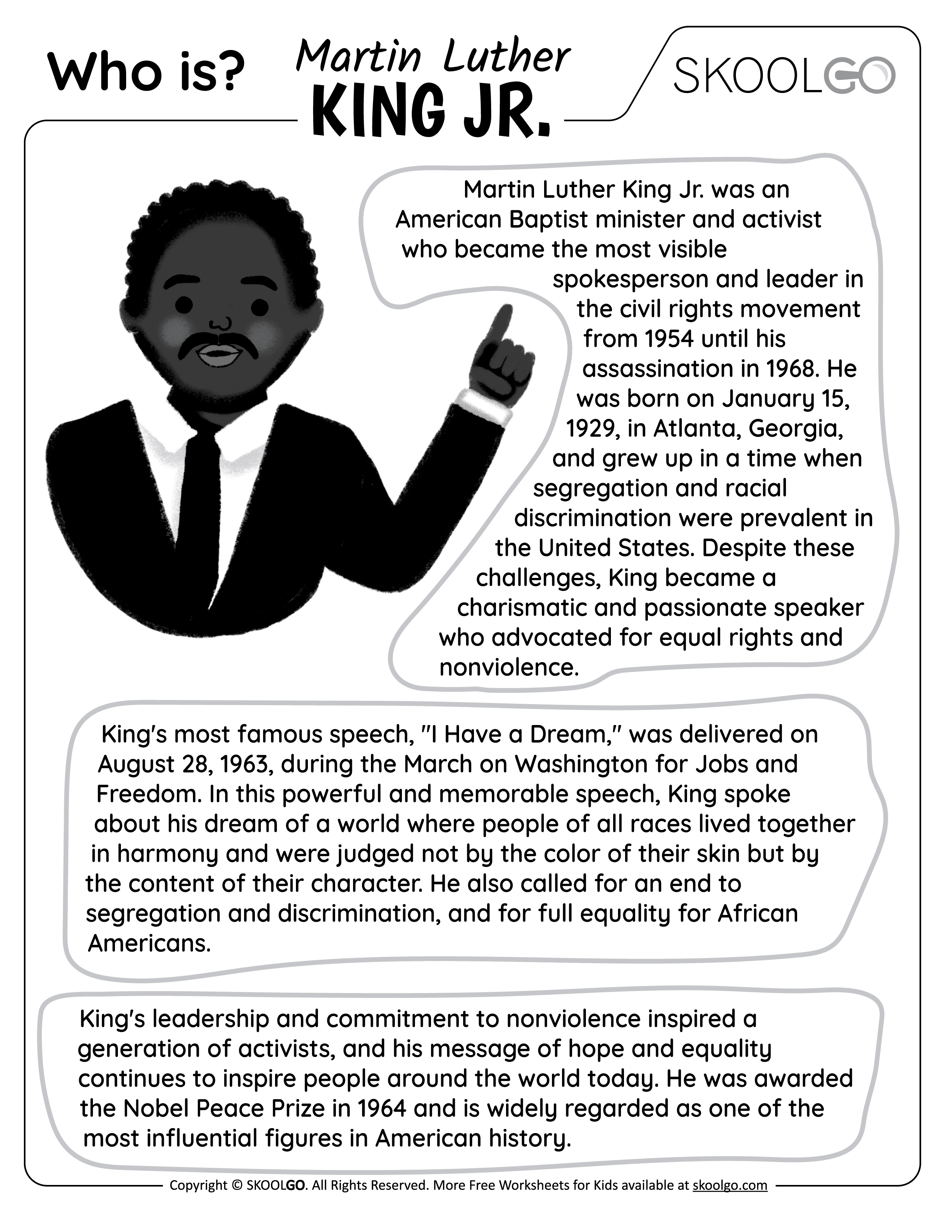 Free Printable Martin Luther King Jr Facts for Kids