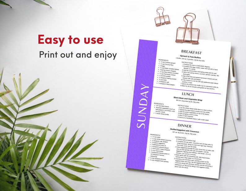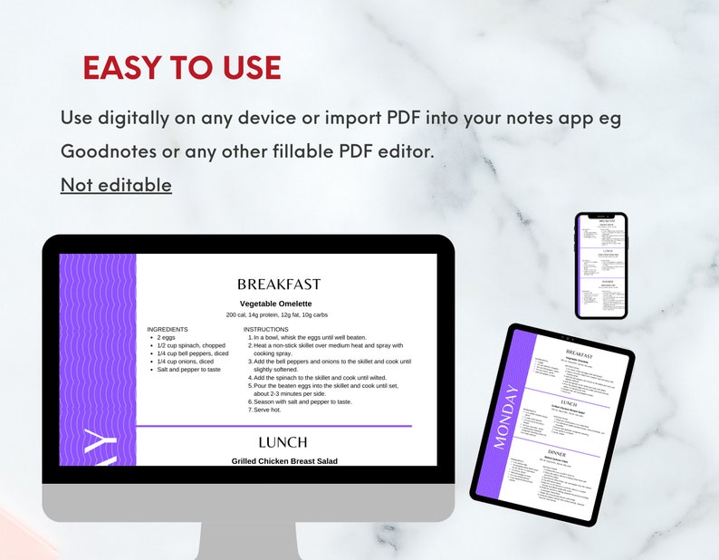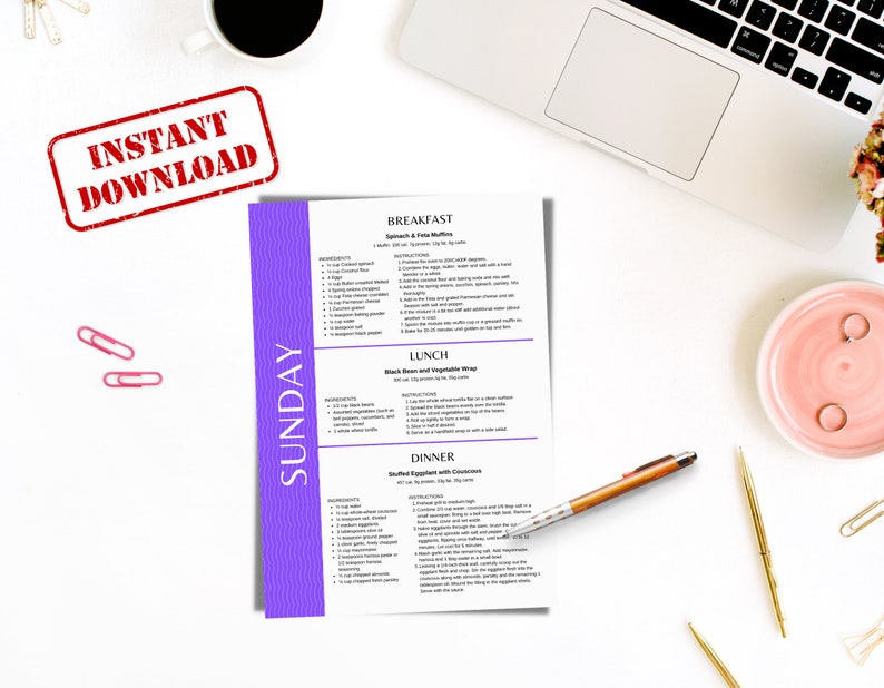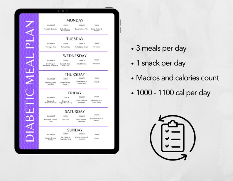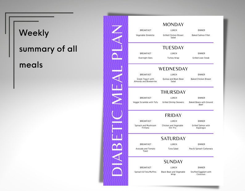 7 Day Diabetic Meal Plan With Recipes and Grocery List PDF Printable