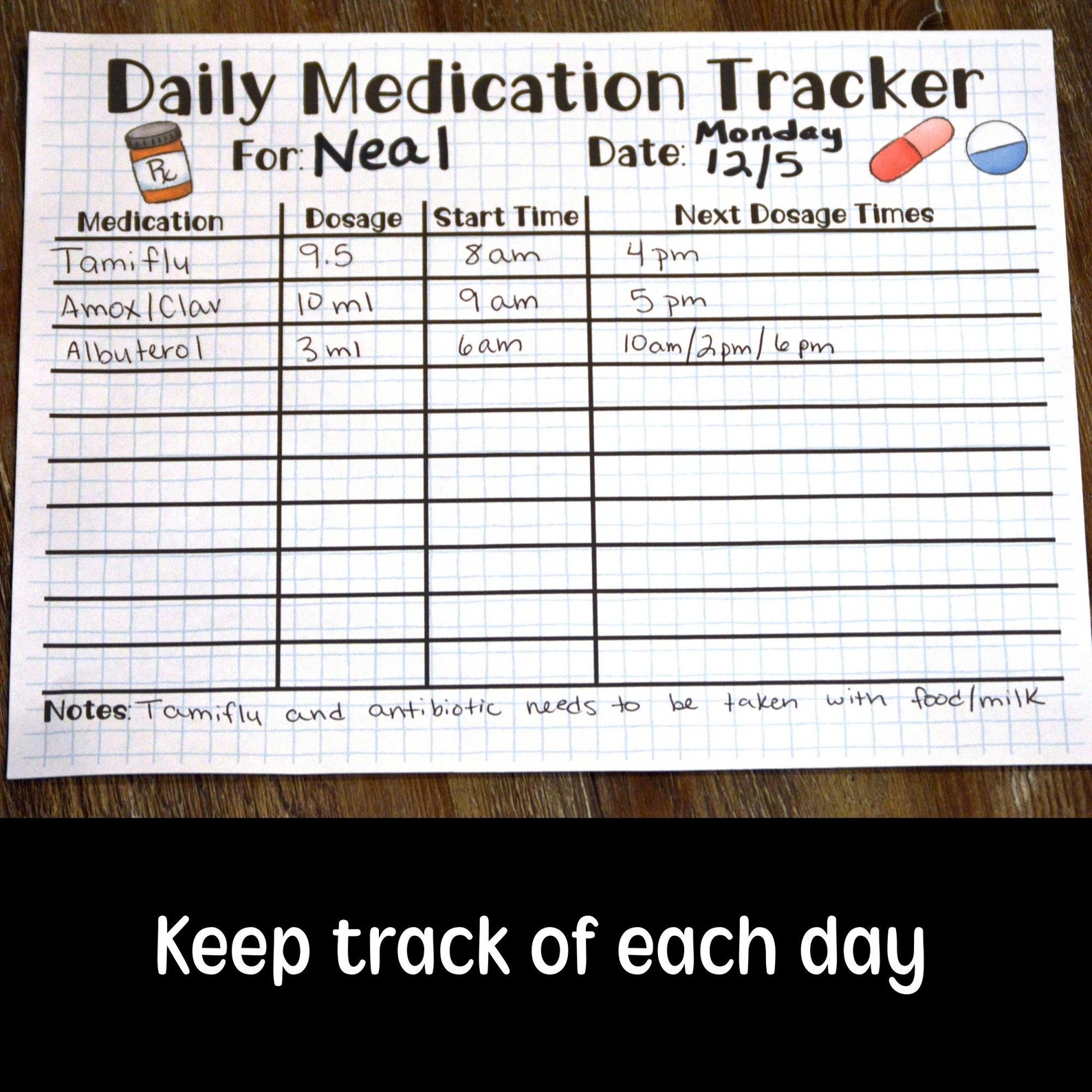 Medication Tracker Printable Medicine Chart Kids Medicine Etsy