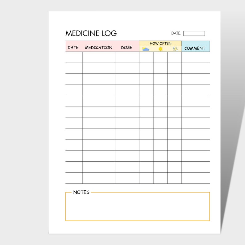 Digital Download: Printable Medicine Chart Etsy