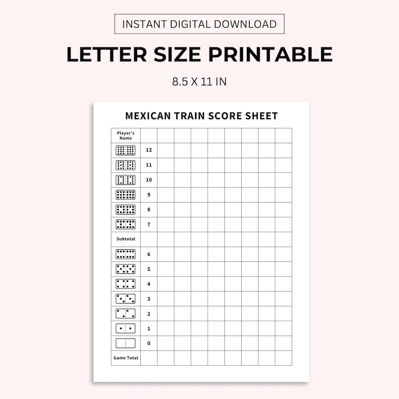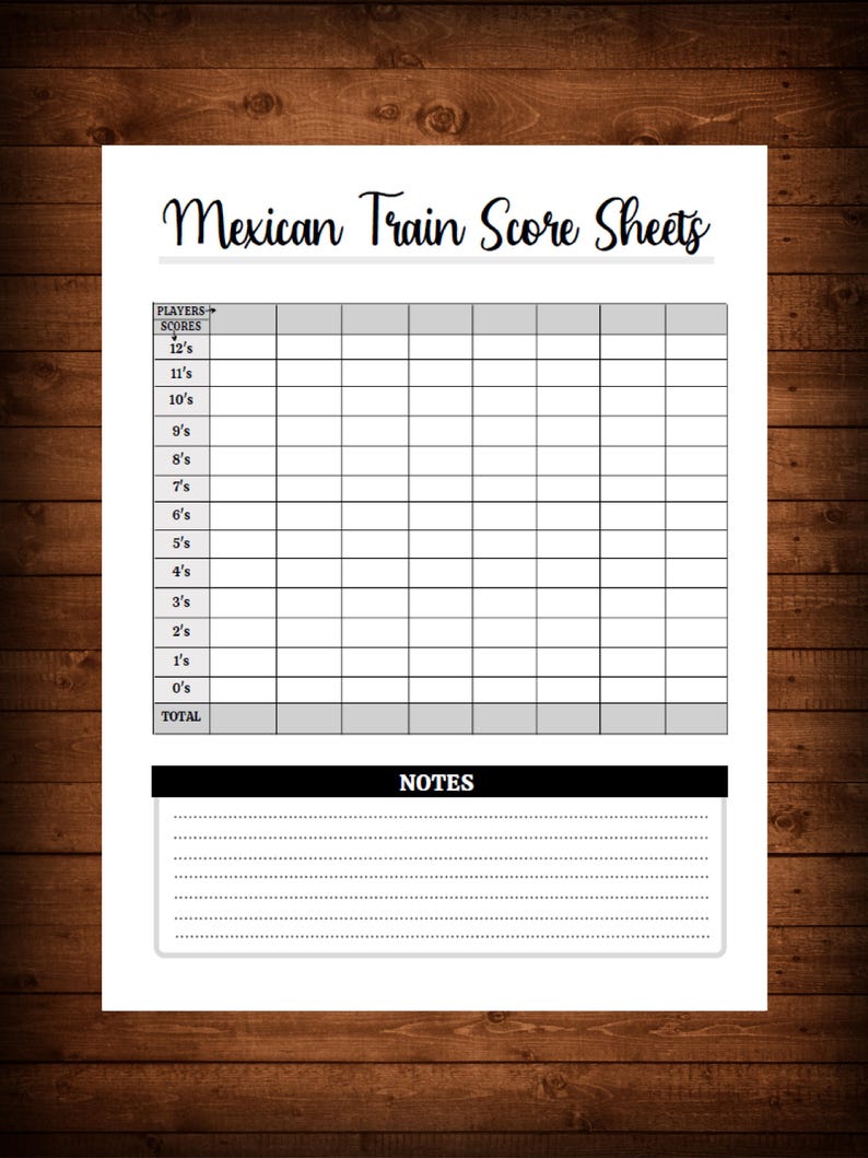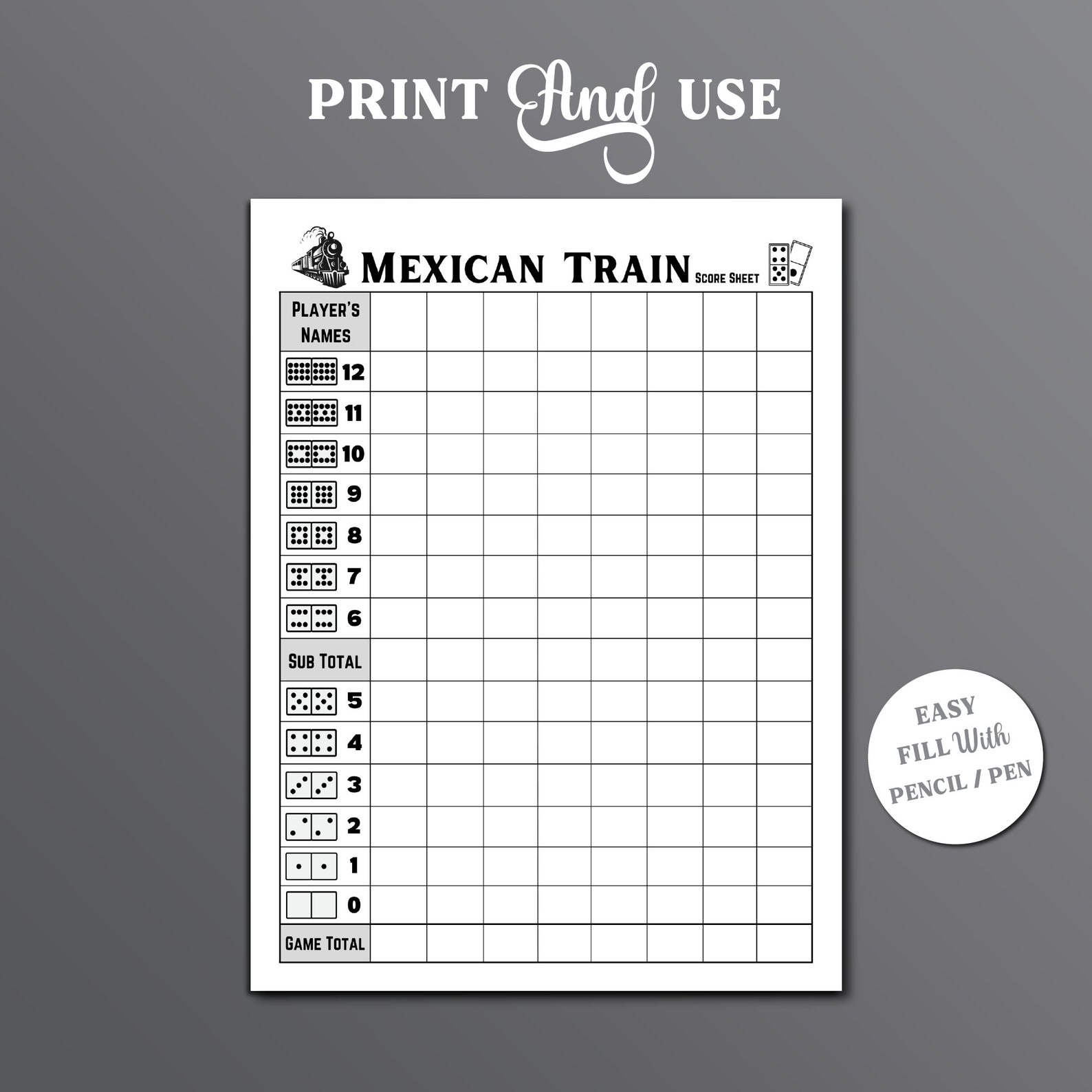 MEXICAN TRAIN Printable Score Sheet Digital Files Etsy Domino games