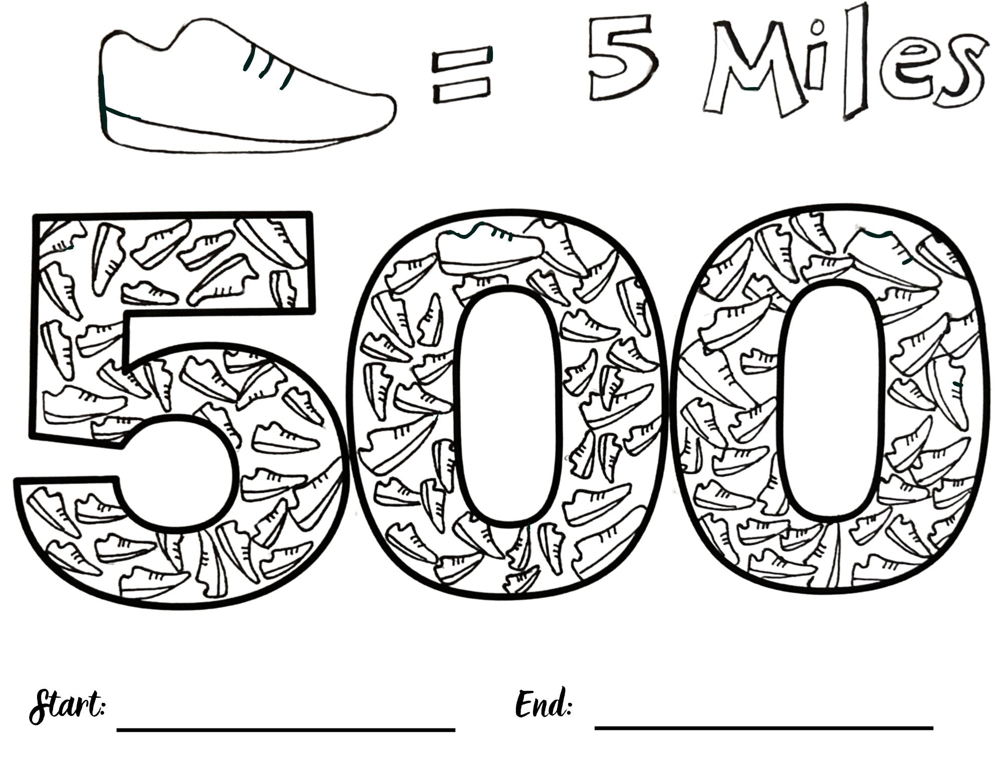 500 Mile Tracker Coloring Page