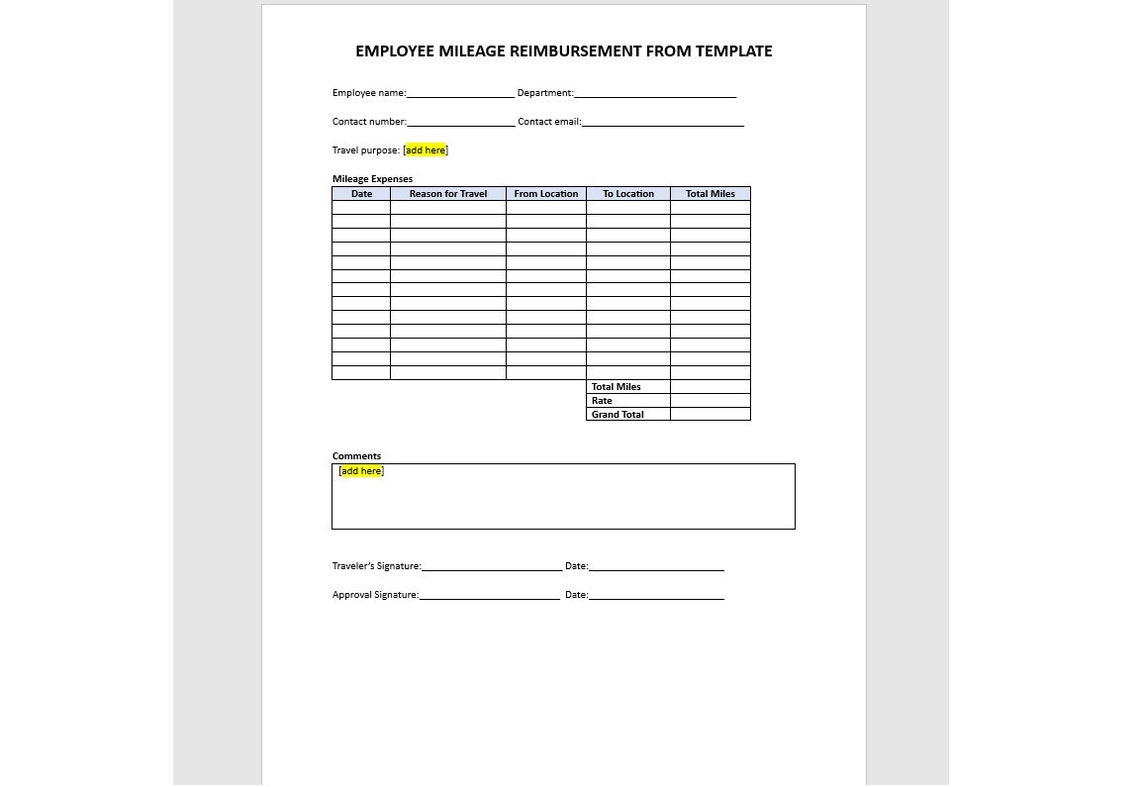 Employee Mileage Reimbursement Form Claim Your Mileage with Ease