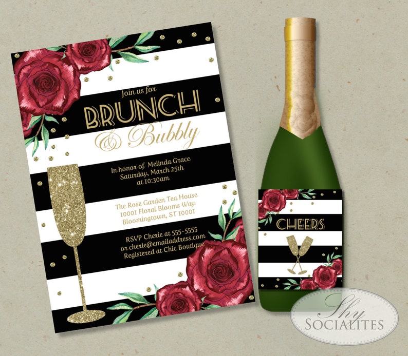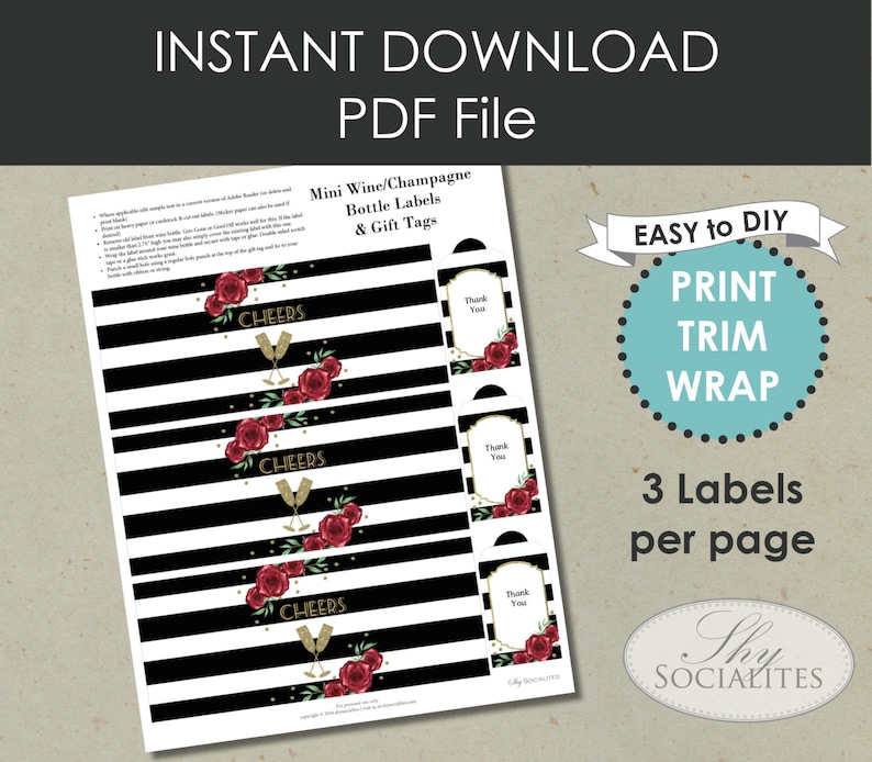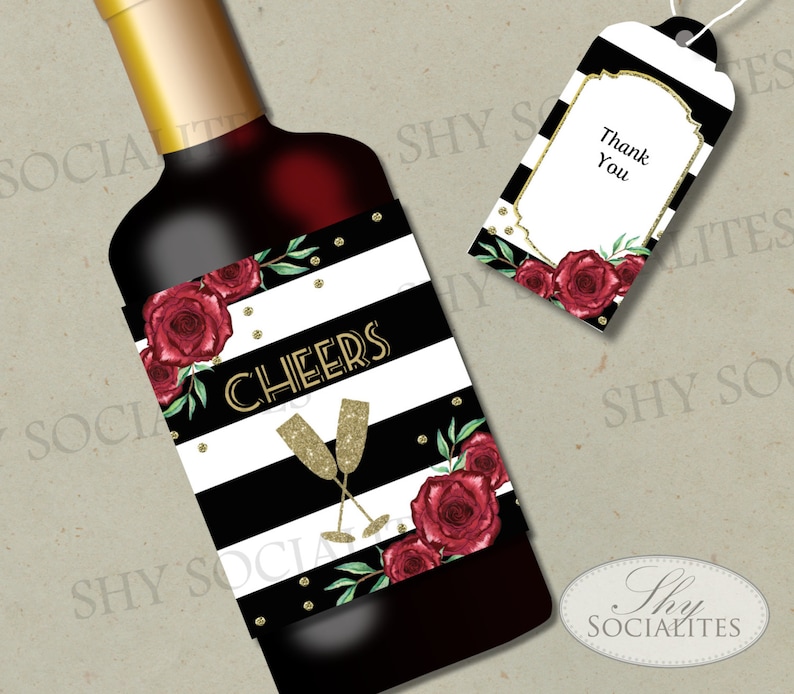 Black Stripes Glitter Roses Printable Mini Wine or Champagne Etsy