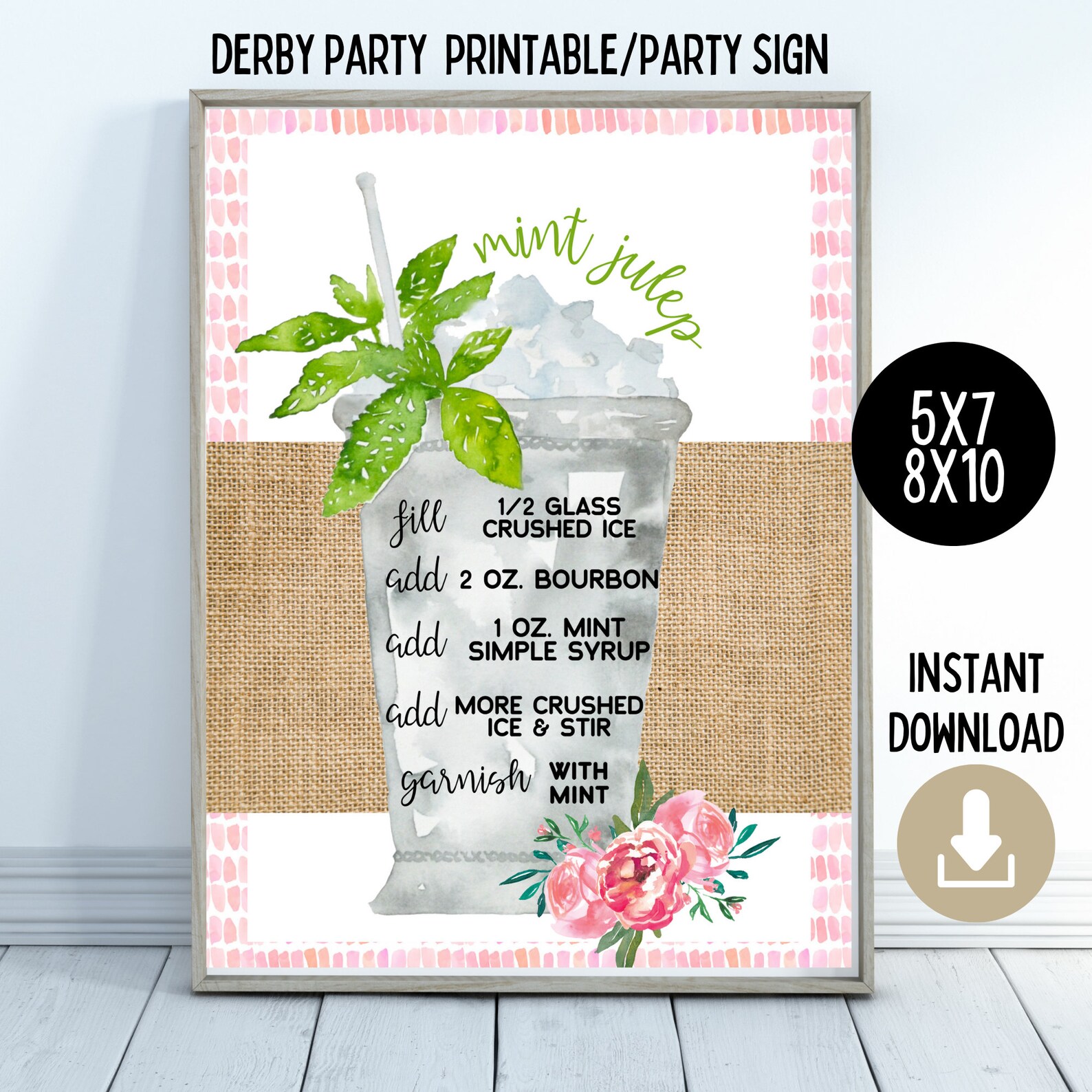 Mint Julep Recipe Printable Floral Mint Julep Derby Party Etsy