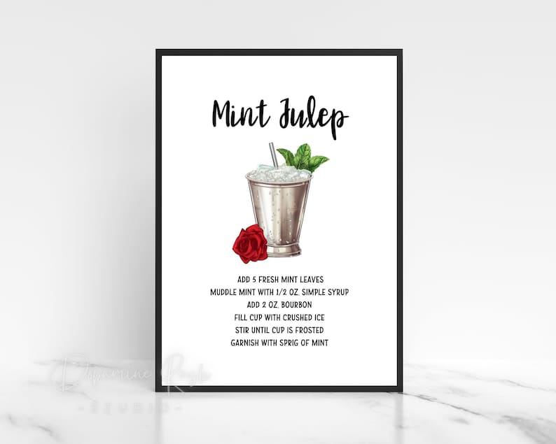 Mint Julep Recipe Card: Kentucky Derby Party Favor Etsy