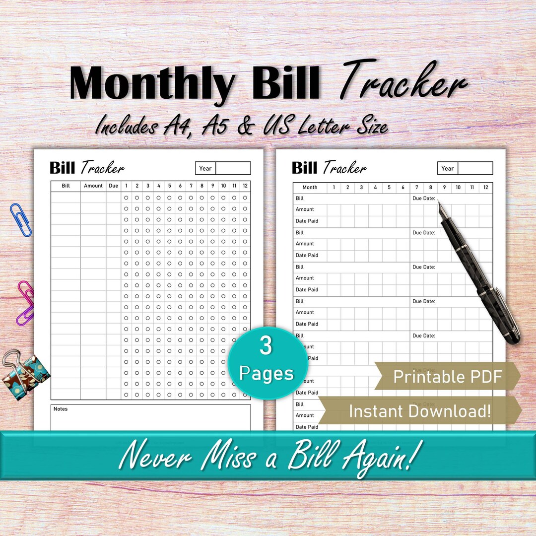 Monthly Bill Tracker Printable Bill Payment Tracker Bill Etsy