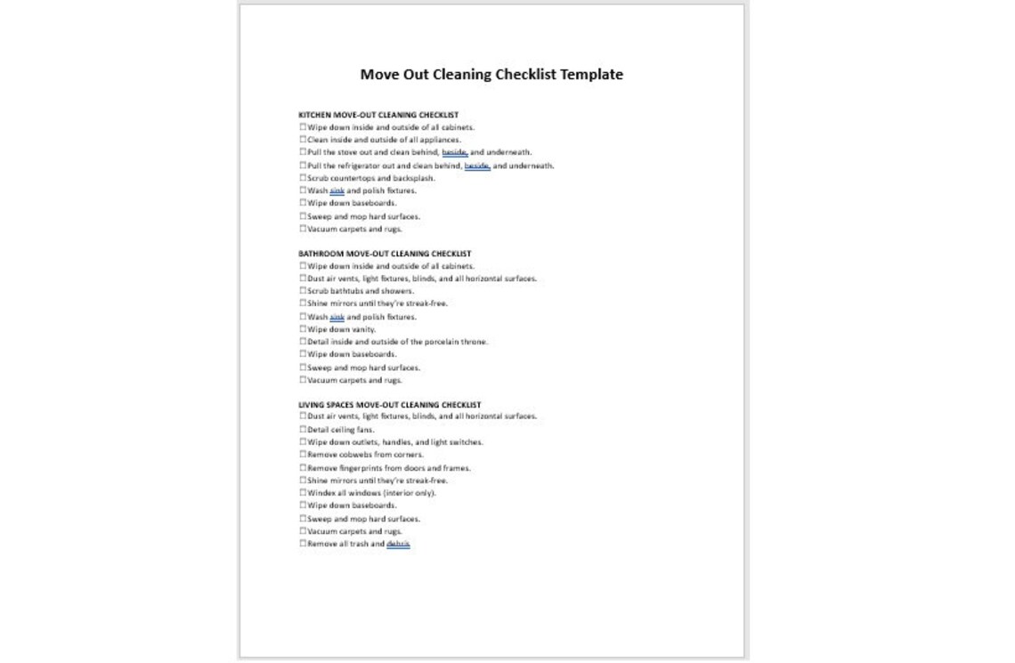 Landlord Move Out Cleaning Checklist Editable Move Out Cleaning
