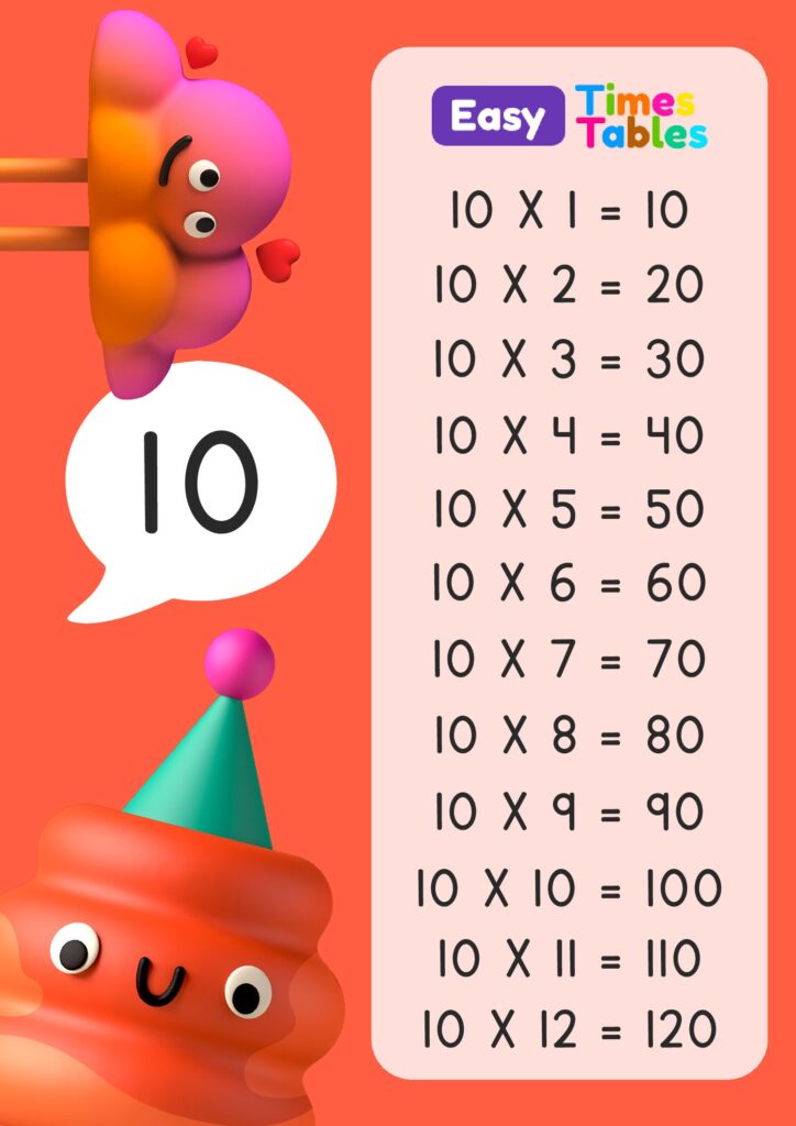 10 Times table Multiplication table of 10 for children