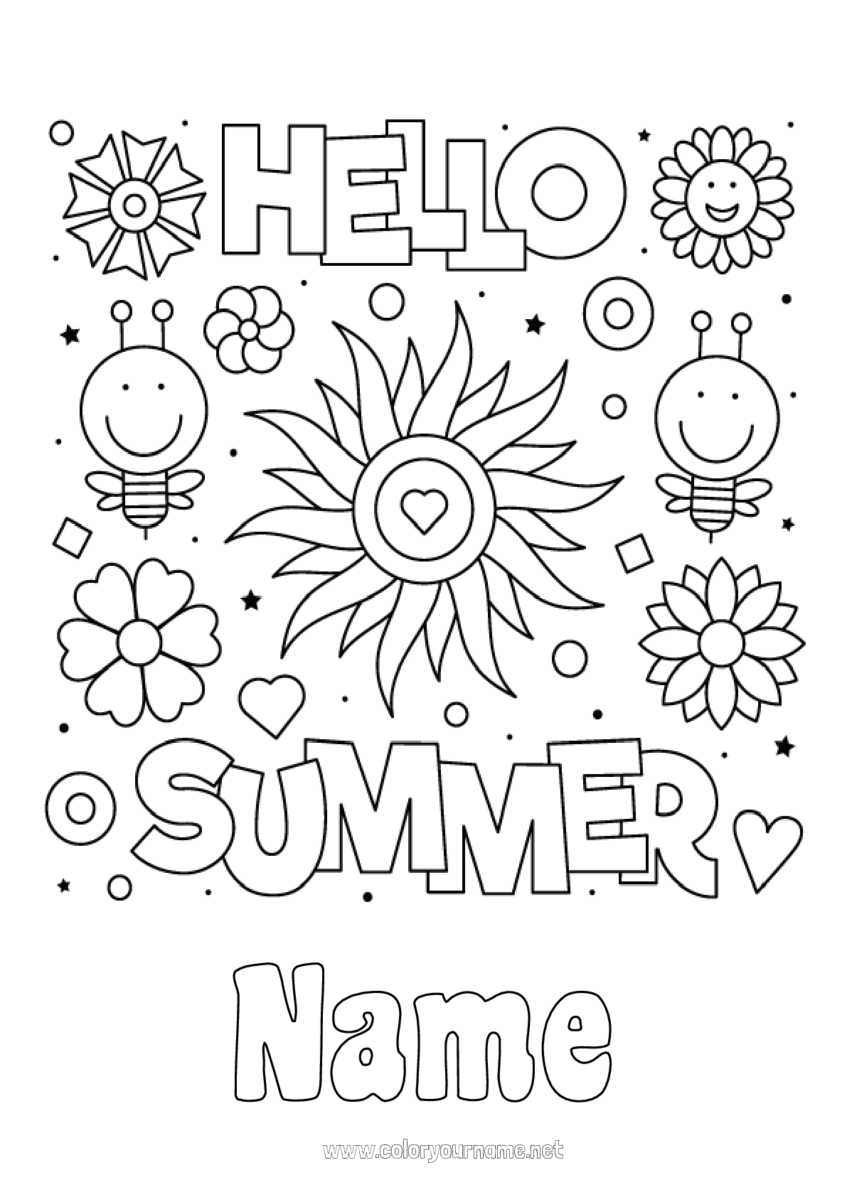 Colouring page #39 Hello Summer #39 with flowers a bird and a sun