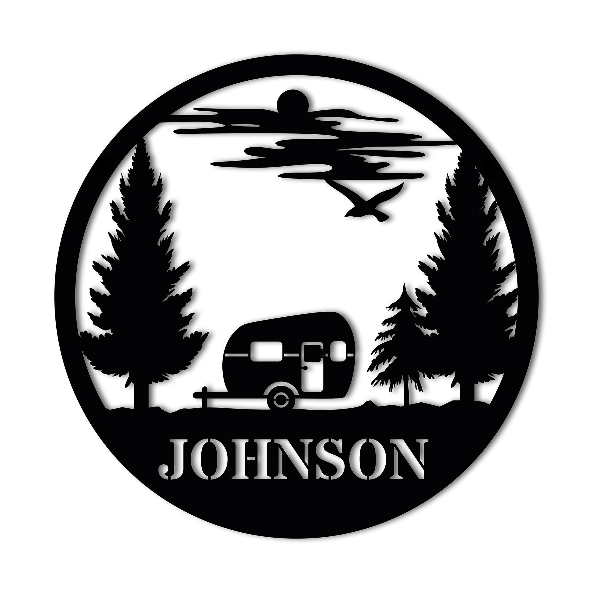 Custom Camping Sign with a RV Camper Personalized Metal Welcome Sign