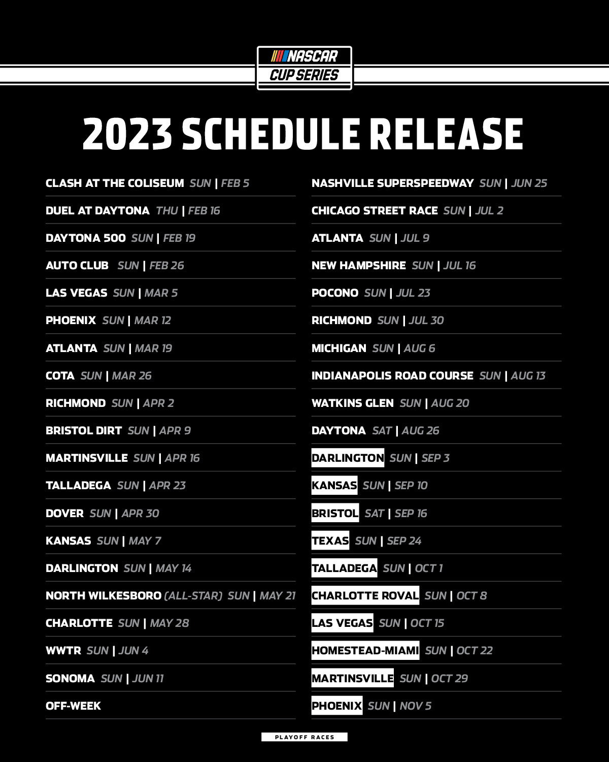Nascar 2023 Printable Schedule