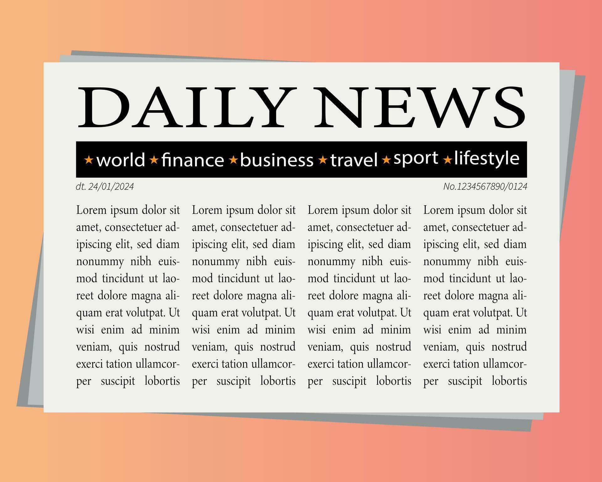 Daily Newspaper pages template Newspaper headline Newsprint vector