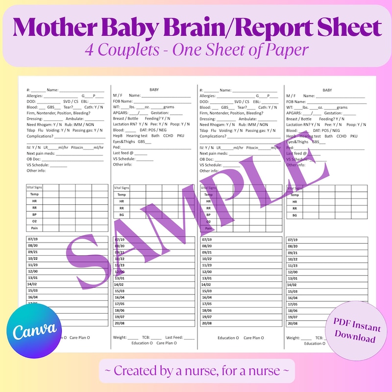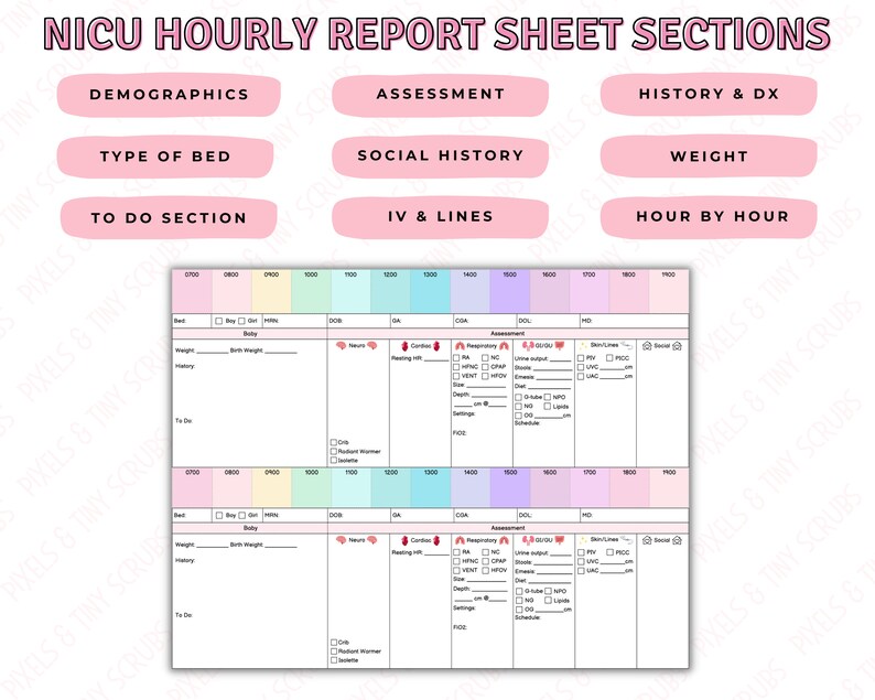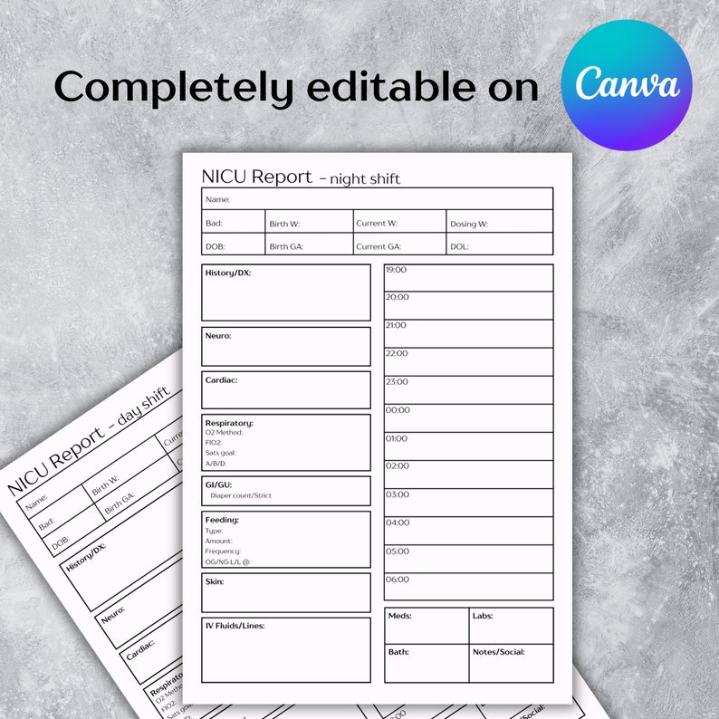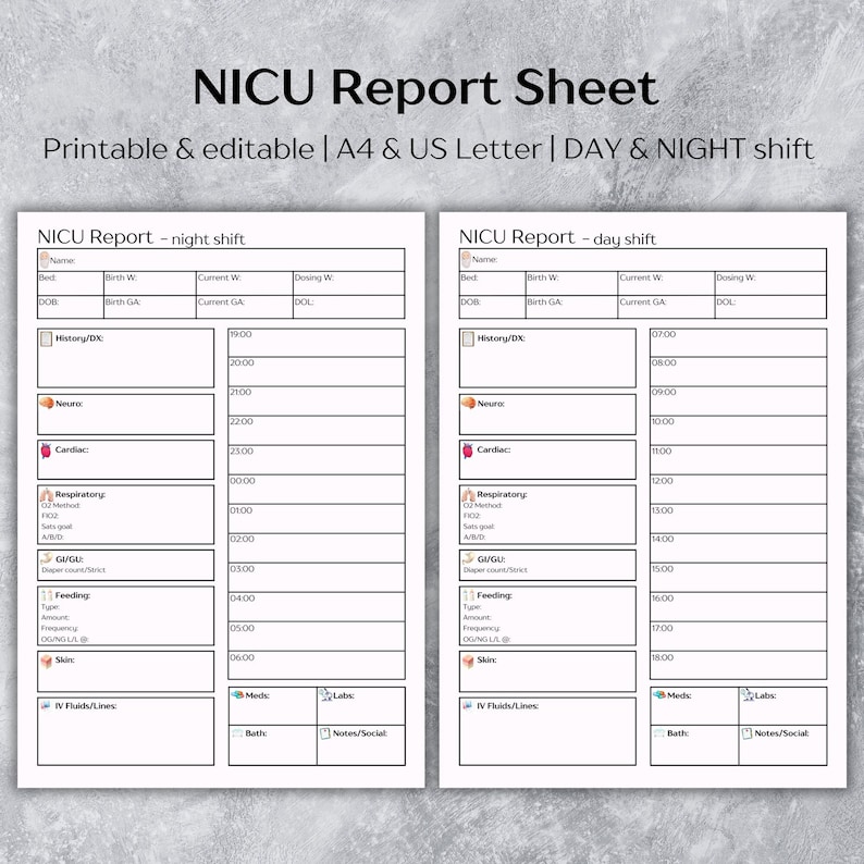 Editable NICU Report Sheet Template Neonatal Handoff Word and Canva