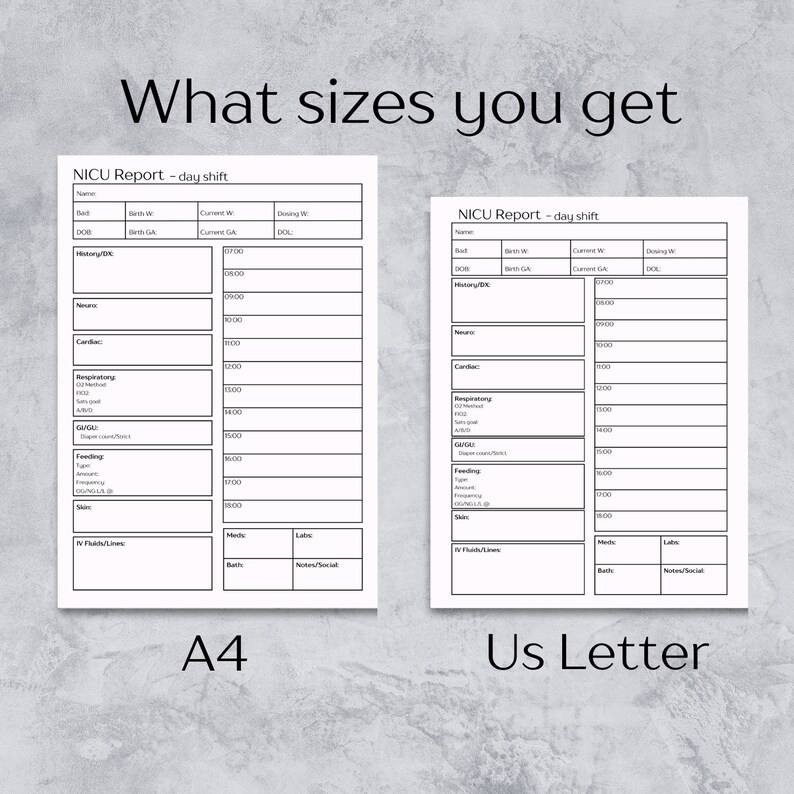 NICU Report Sheet 1 Patient A4/US Letter Day/night Shift Editable